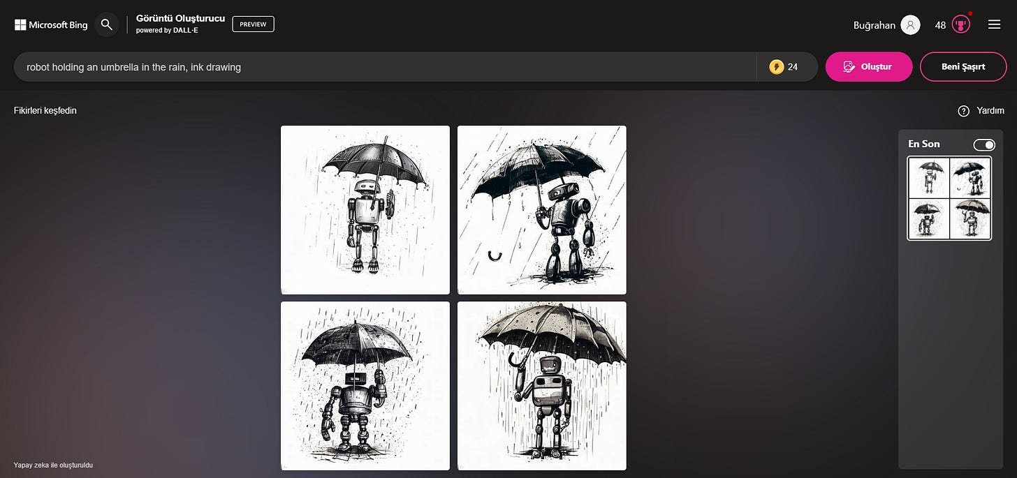 Sizler de bu linkten kullanabilirsiniz: https://www.bing.com/images/create